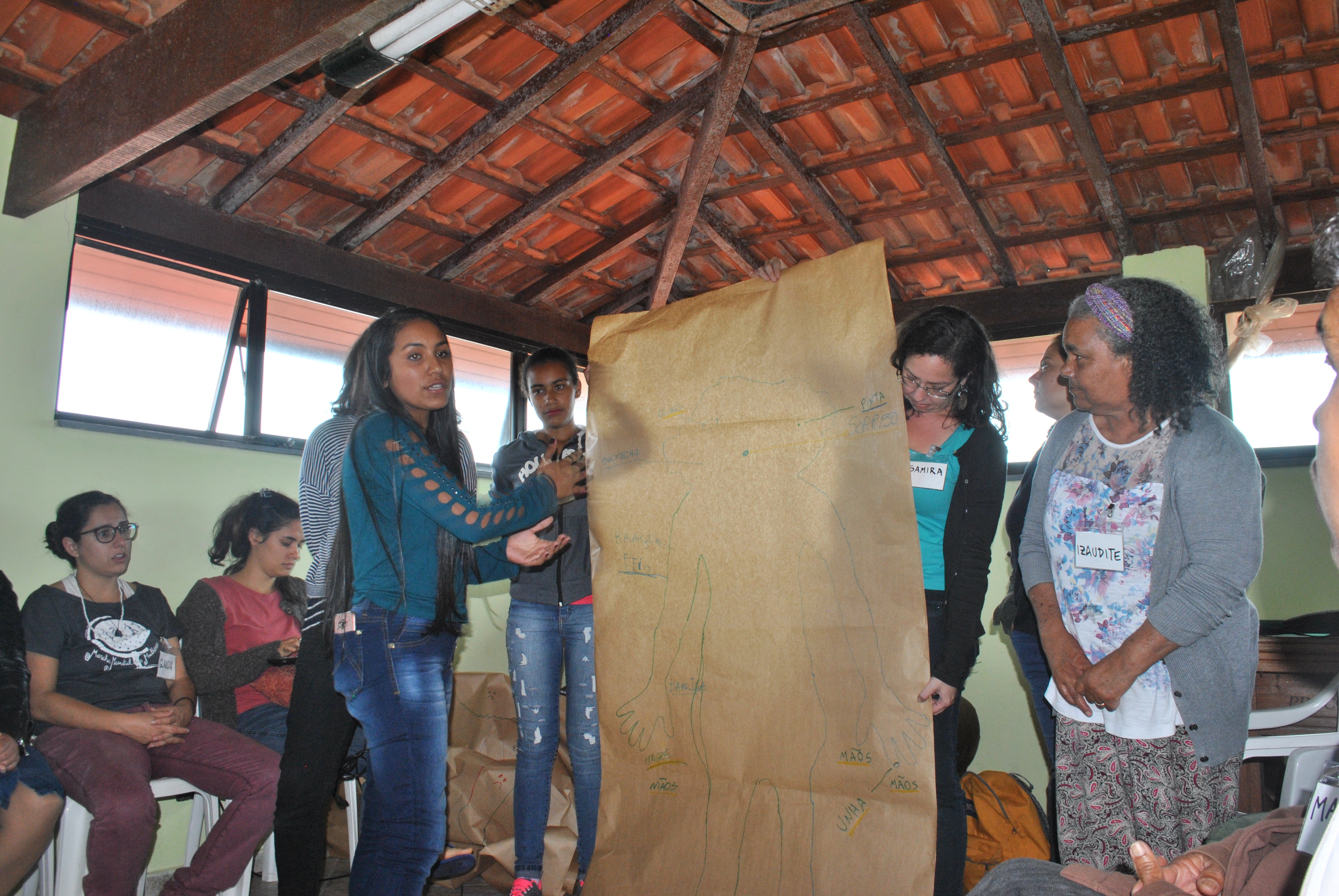 A relação das mulheres com seus próprios corpos foi o tema da primeira atividade do curso, no dia 6. As discussões a partir da dinâmica inicial mostraram como os corpos das mulheres são apropriados pelos homens em espaços públicos ou privados e como a imposição de padrões de beleza supostamente ideais para as mulheres pela sociedade e pela mídia afeta o olhar que temos sobre nossos próprios corpos. Os métodos contraceptivos e de reposição hormonal e a relação destes com a saúde e a autonomia das mulheres sobre seus corpos foram outro tema discutido.