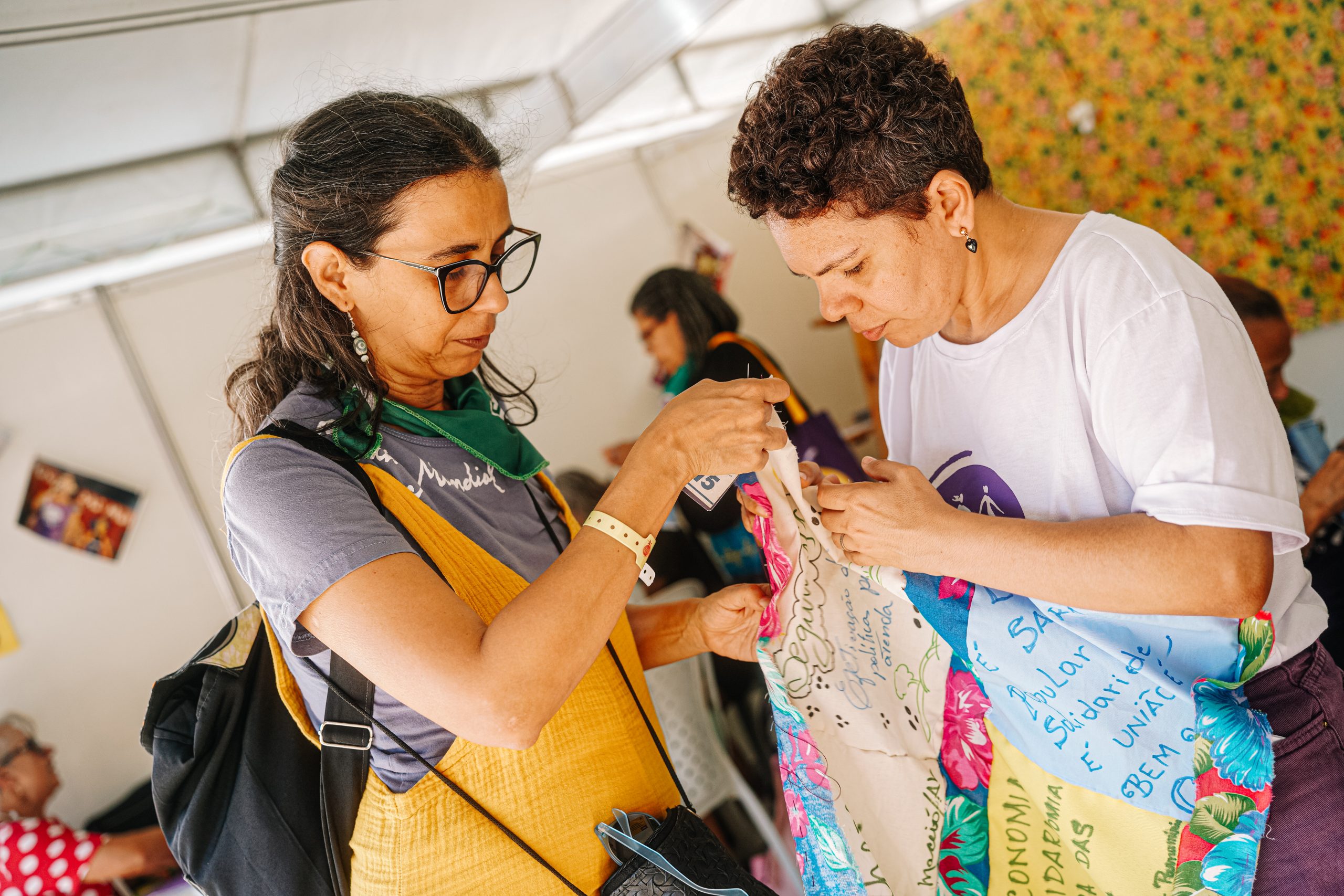 Durante o 3º Encontro Nacional da Marcha Mundial das Mulheres, ocorrido entre 06 e 09 de julho de 2024 no Rio Grande do Norte, foi organizada uma Tenda Nalu Faria. Ambientada com fotos da companheira, a tenda foi espaço para uma missão coletiva: costurar uma Colcha dos Sonhos de Nalu. Os retalhos produzidos pelas participantes do Encontro levam mensagens de carinho e reivindicações. No final do Encontro, a colcha foi levada para a manifestação que tomou as ruas da cidade de Natal. Veja ao lado imagens da colcha em produção e em movimento.