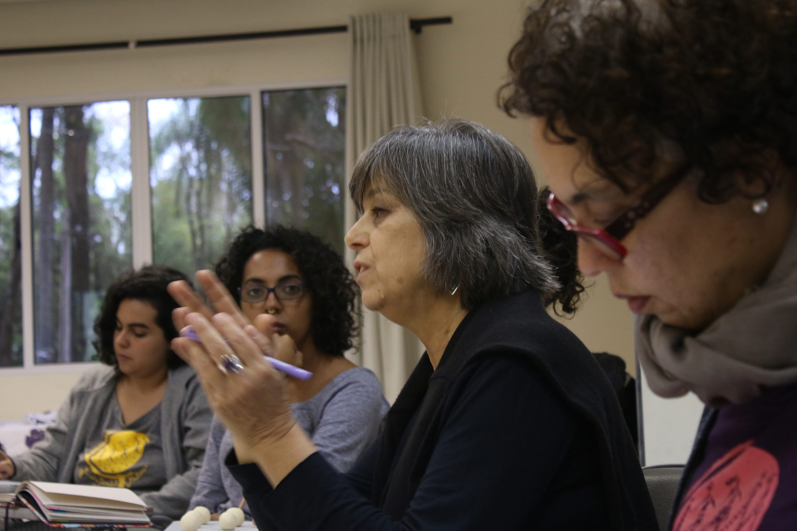 Nalu Faria com Tica Moreno, Miriam Nobre e Helena Hirata, em evento sobre o livro O cuidado: teorias e práticas (2022), de Hirata