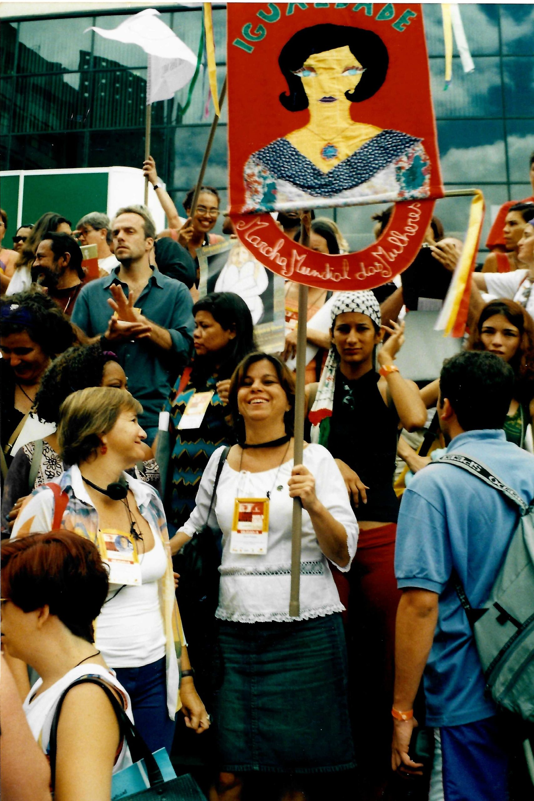 Na SOF e na relação com as organizações populares mistas, Nalu era uma das várias militantes que, nos anos 1990, acreditavam na necessidade de construir um movimento de mulheres massivo, auto-organizado, autônomo e de esquerda. Assim, foi com muita esperança política que elas receberam a convocatória para Marcha Mundial das Mulheres e a possibilidade de sua formação como movimento internacional de base, vinculado às mulheres trabalhadoras, em vez de à agenda dos organismos multilaterais. Essa insistência na auto-organização foi uma aposta política.