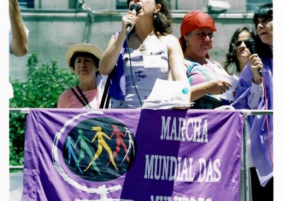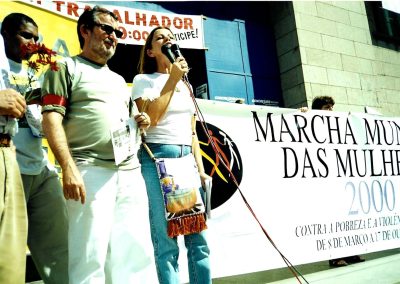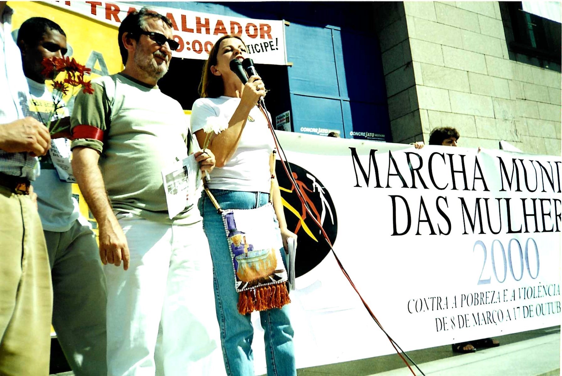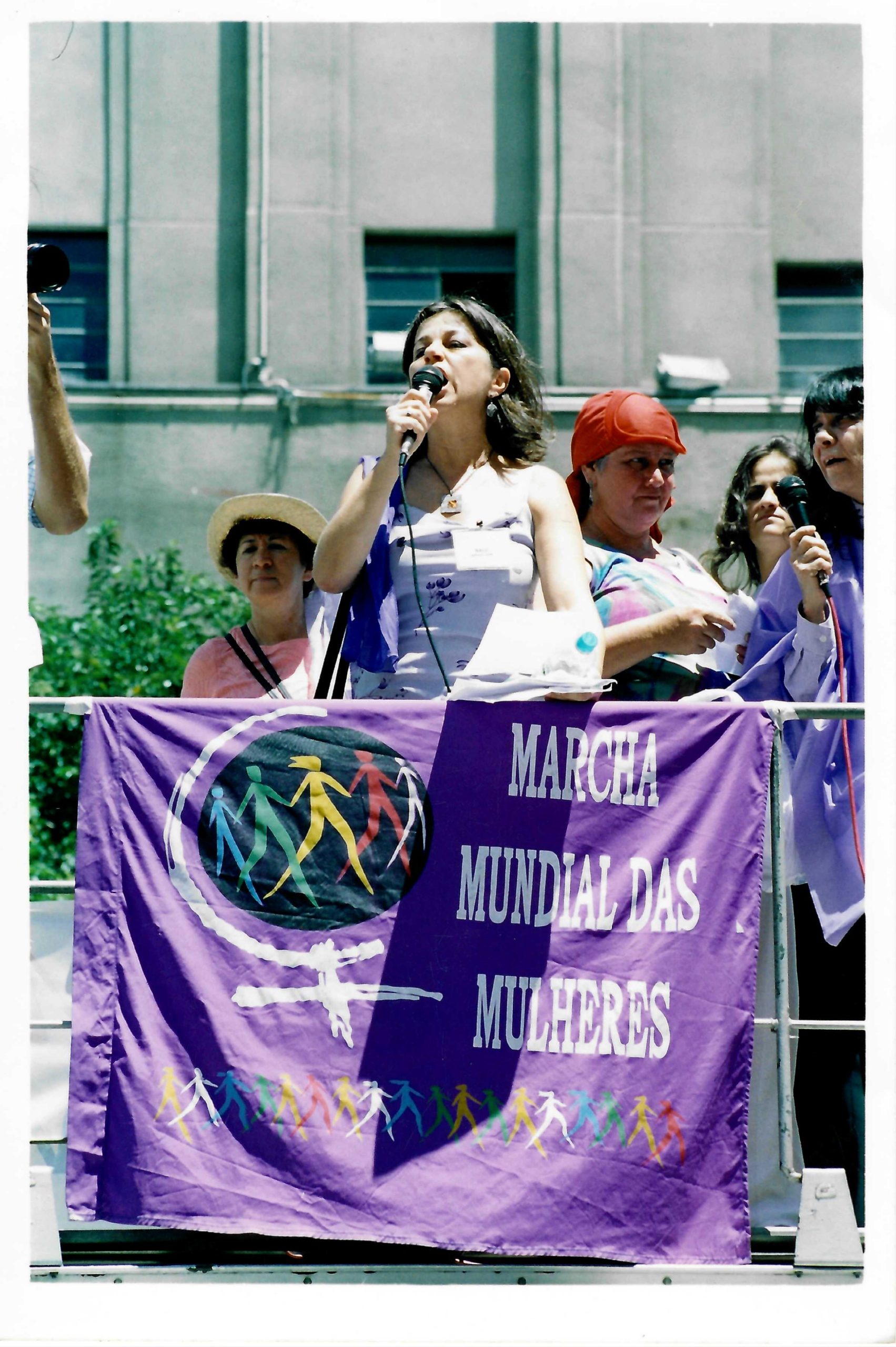 Em 1998, suas companheiras Miriam Nobre, da SOF, e Ednalda Bezerra, da CUT, participaram da reunião internacional de preparação das mobilizações que se iniciariam no ano 2000, com as 2000 Razões para Marchar contra a Pobreza e a Violência Sexista. Essa campanha internacional aconteceu entre 8 de março e 17 de outubro de 2000, e colocou a Marcha Mundial das Mulheres nas ruas pela primeira vez. No Brasil, a campanha foi incluída no mote da manifestação do Dia Internacional de Luta das Mulheres, como se vê no cartaz ao lado.