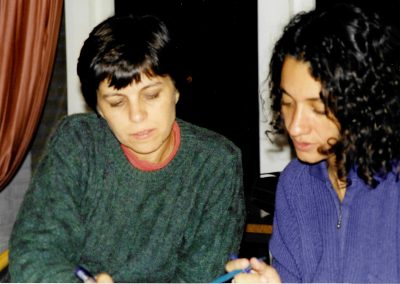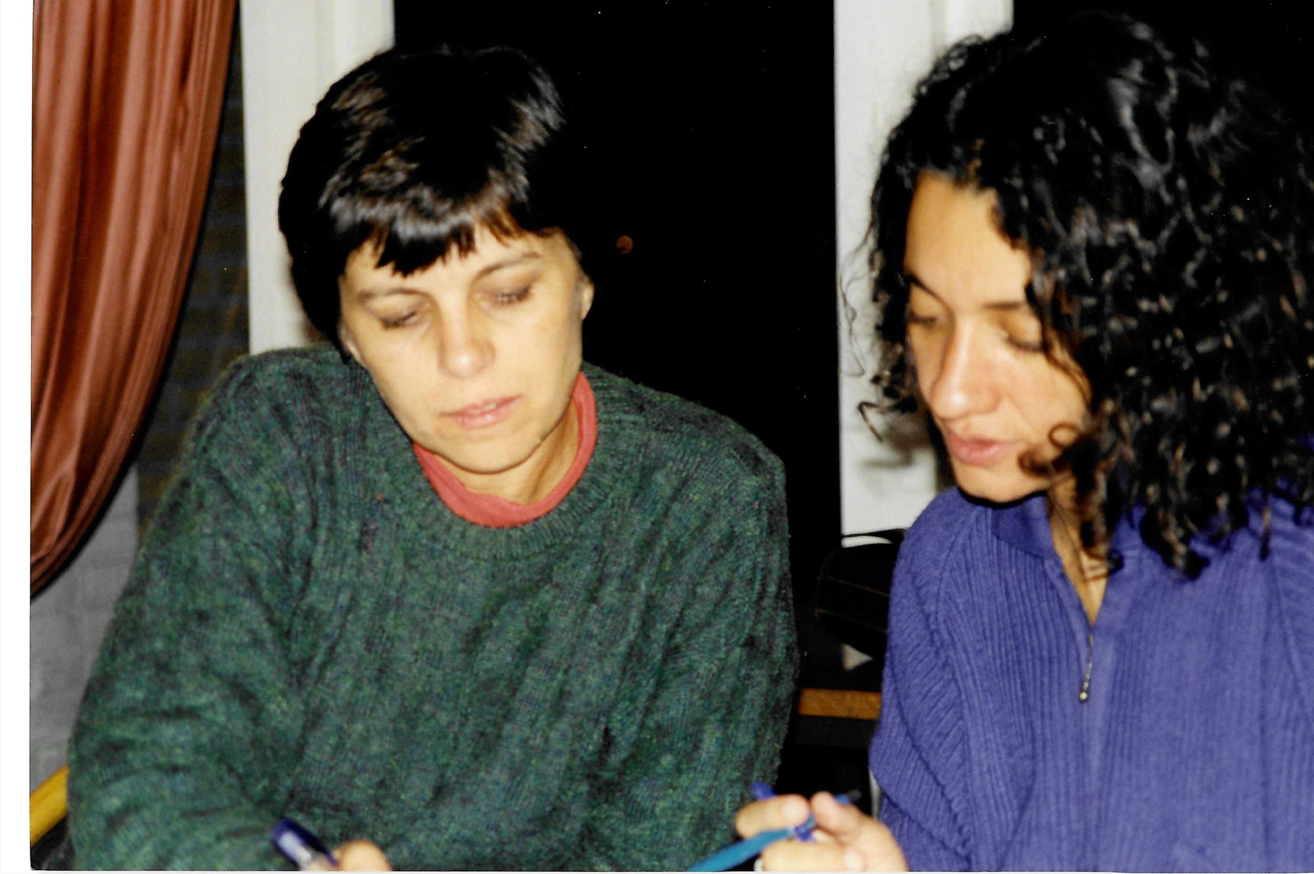 As imagens ao lado mostram anotações de Nalu no ano de 1998. Naquele momento, ela se preparava para a edição dos Cadernos Sempreviva sobre sexualidade e gênero, que debatia a relação do feminismo com o corpo e com a luta por autonomia e pela quebra de padrões. No mesmo ano, foi publicado também o artigo “Sexualidade e feminismo”, disponível na coleção acima e referido no recorte de jornal de março de 1999.