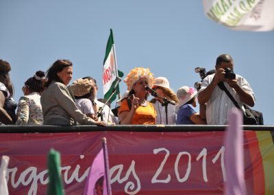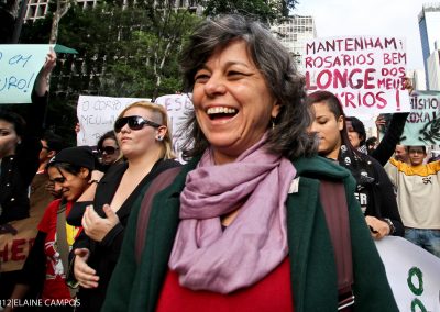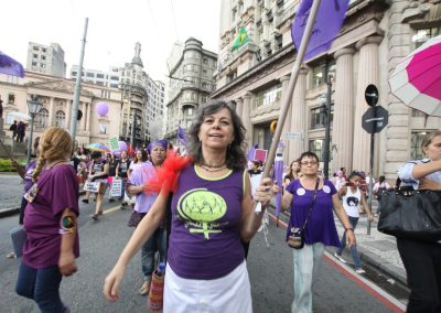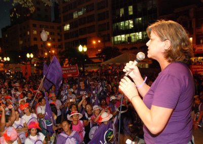 Reunimos abaixo algumas das fotografias que encontramos de Nalu Faria em diferentes momentos. São fotos que fazem parte dos acervos da SOF e da Marcha Mundial das Mulheres, além do acervo pessoal de Nalu, e que mostram um pouco de suas atividades e parcerias no Brasil e no mundo.