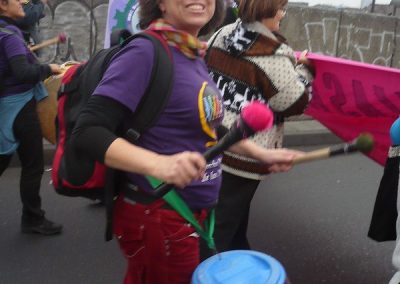 As mobilizações de rua das mulheres, que tinham sido muito fortes nos anos 1980 e depois reduzidas nos anos 1990, devido à institucionalização neoliberal, foram retomadas com força massiva a partir daí, constituindo uma marca da Marcha Mundial das Mulheres. Nalu apostou nisso desde o início, propondo e incentivando as batucadas, as pinturas de faixas artísticas por militantes e artistas como Nilva Rigo (Biba) e mesmo a confecção de bandeiras e camisetas bem coloridas. Havia uma preocupação de reocupar as ruas com uma identidade antissistêmica.